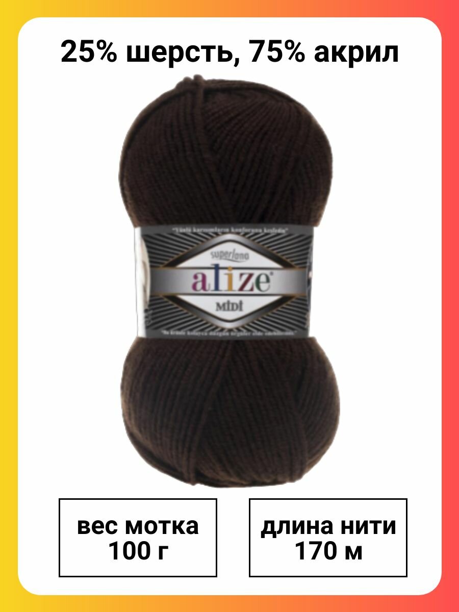 Пряжа Alize Superlana Midi 26 коричневый, 100 г, 170 м, 5 штук информация: