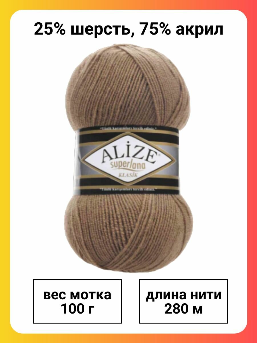 10 цен на Пряжа Alize Superlana Klasik 466 темно-бежевый, 100 г, 280 м, 5 штук