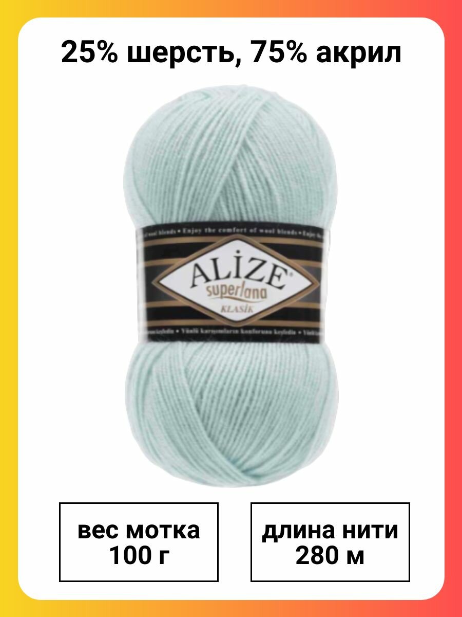 10 цен на Пряжа Alize Superlana Klasik 514 зимнее небо, 100 г, 280 м, 5 штук