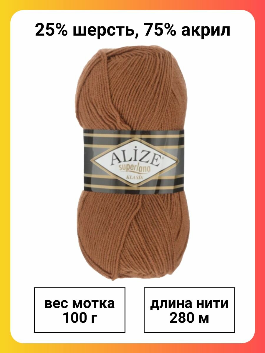 10 цен на Пряжа Alize Superlana Klasik 565 корица, 100 г, 280 м, 5 штук
