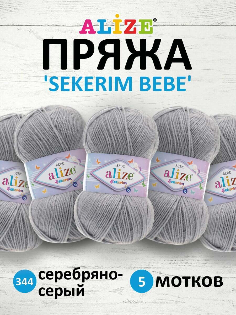 Пряжа для вязания ALIZE 'Sekerim Bebe', 100г, 320м (100% акрил) (344 серебряно-серый), 5 мотков информация: