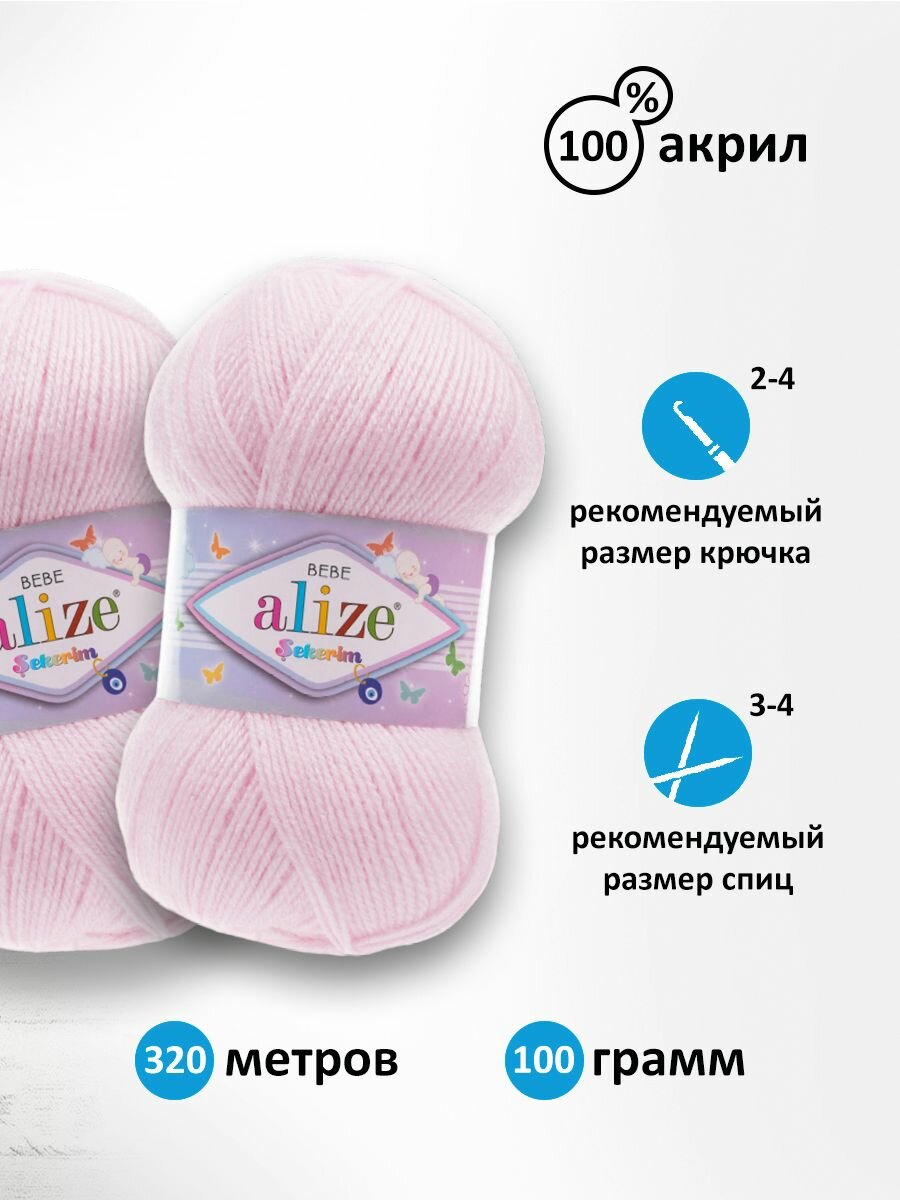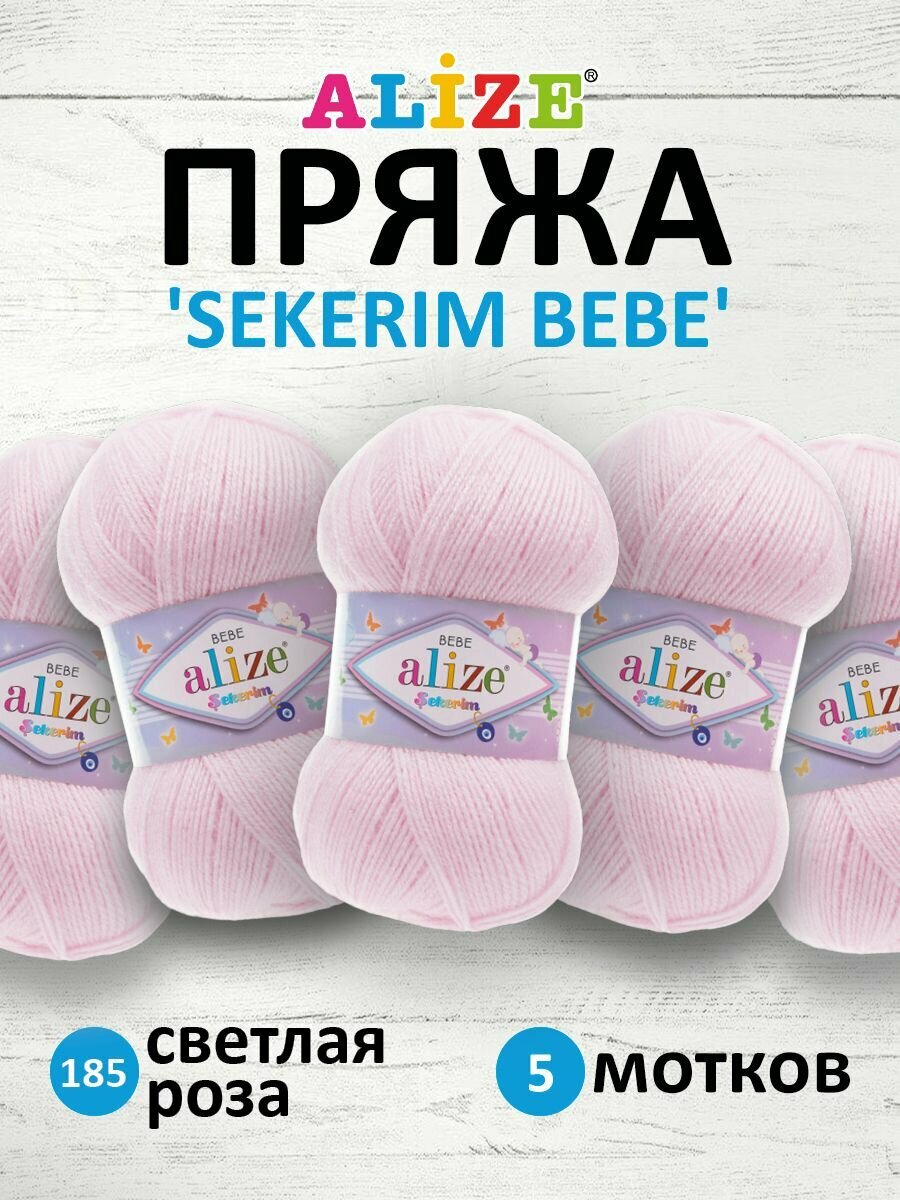 Пряжа для вязания ALIZE 'SEKERIM BEBE' 100 г, 320 м (100% акрил) (185 светлая роза), 5 мотков информация: