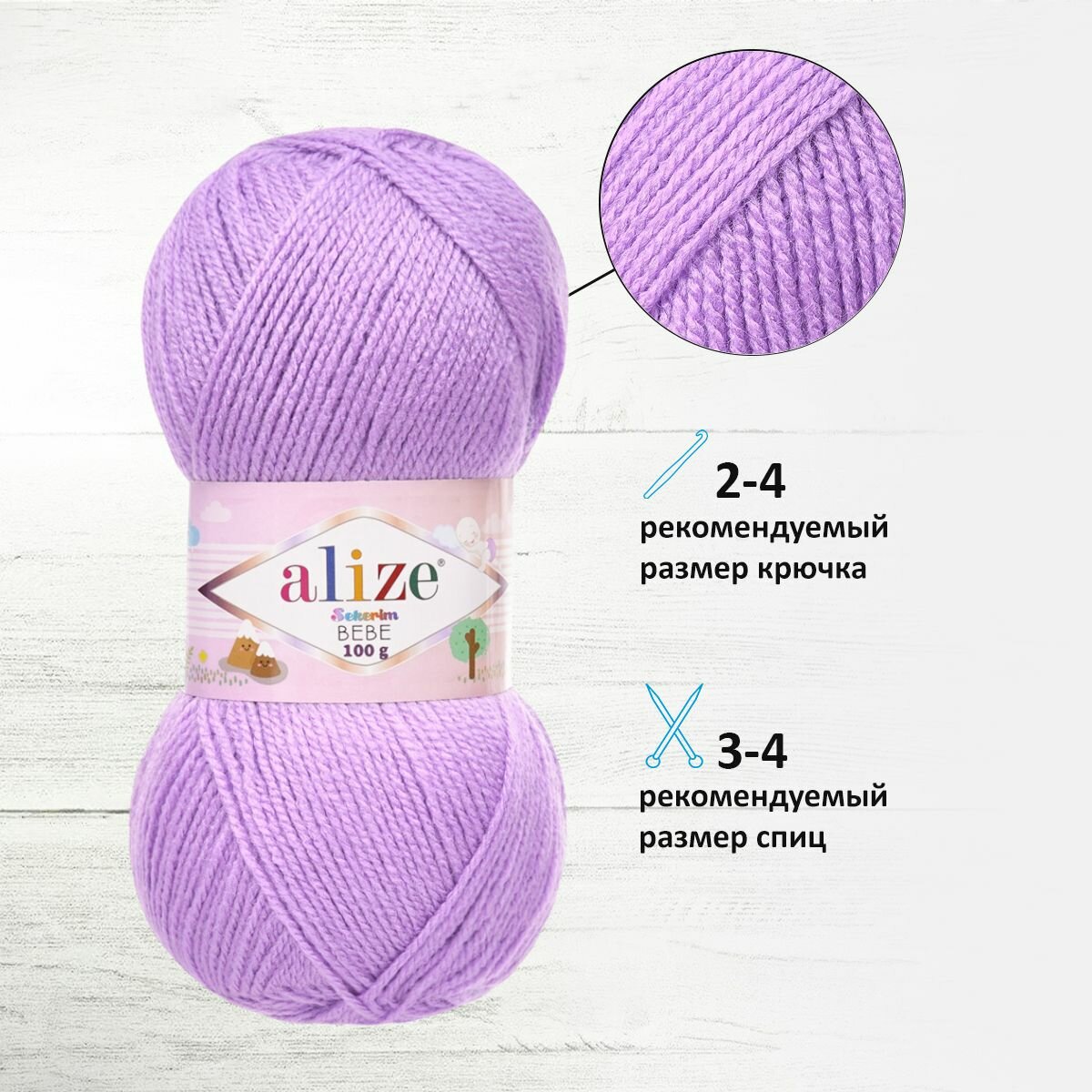 Пряжа для вязания Alize Sekerim Bebe (Шекерим Беби) - 1 моток 27 лиловый, детская гипоаллергенная, 100% акрил, 320м/100г