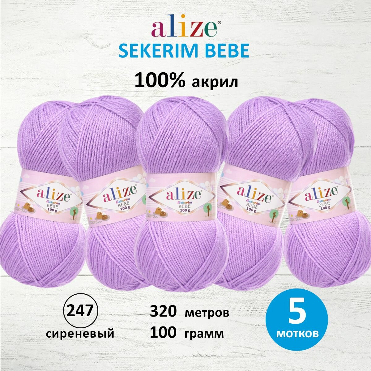 Пряжа для вязания ALIZE 'Sekerim BEBE', 100г, 320м (100% акрил) (247 сиреневый), 5 мотков информация: