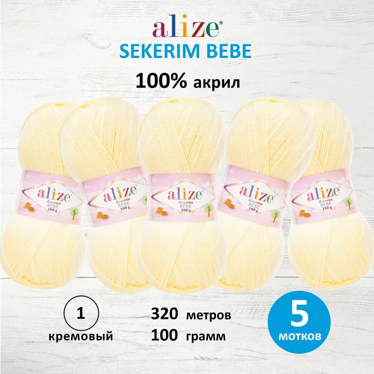 Пряжа ALIZE SEKERIM BEBE, кремовый - 01, 100% акрил, 5 мотков, 100 г, 320 м. 1 211 ₽