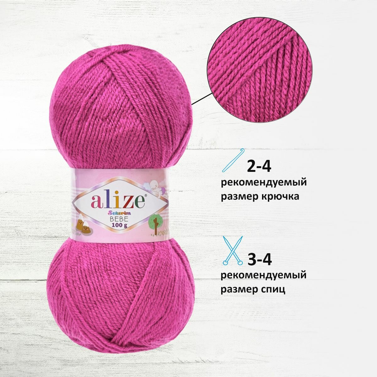 Пряжа для вязания Alize Sekerim Bebe (Шекерим Беби) - 1 моток 315 темно-розовый, детская гипоаллергенная, 100% акрил, 320м/100г