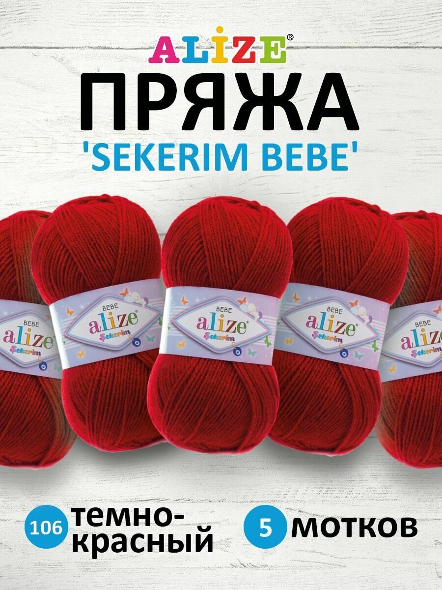 Пряжа для вязания ALIZE 'Sekerim Bebe', 100г, 320м (100% акрил) (106 тёмно-красный), 5 мотков информация: