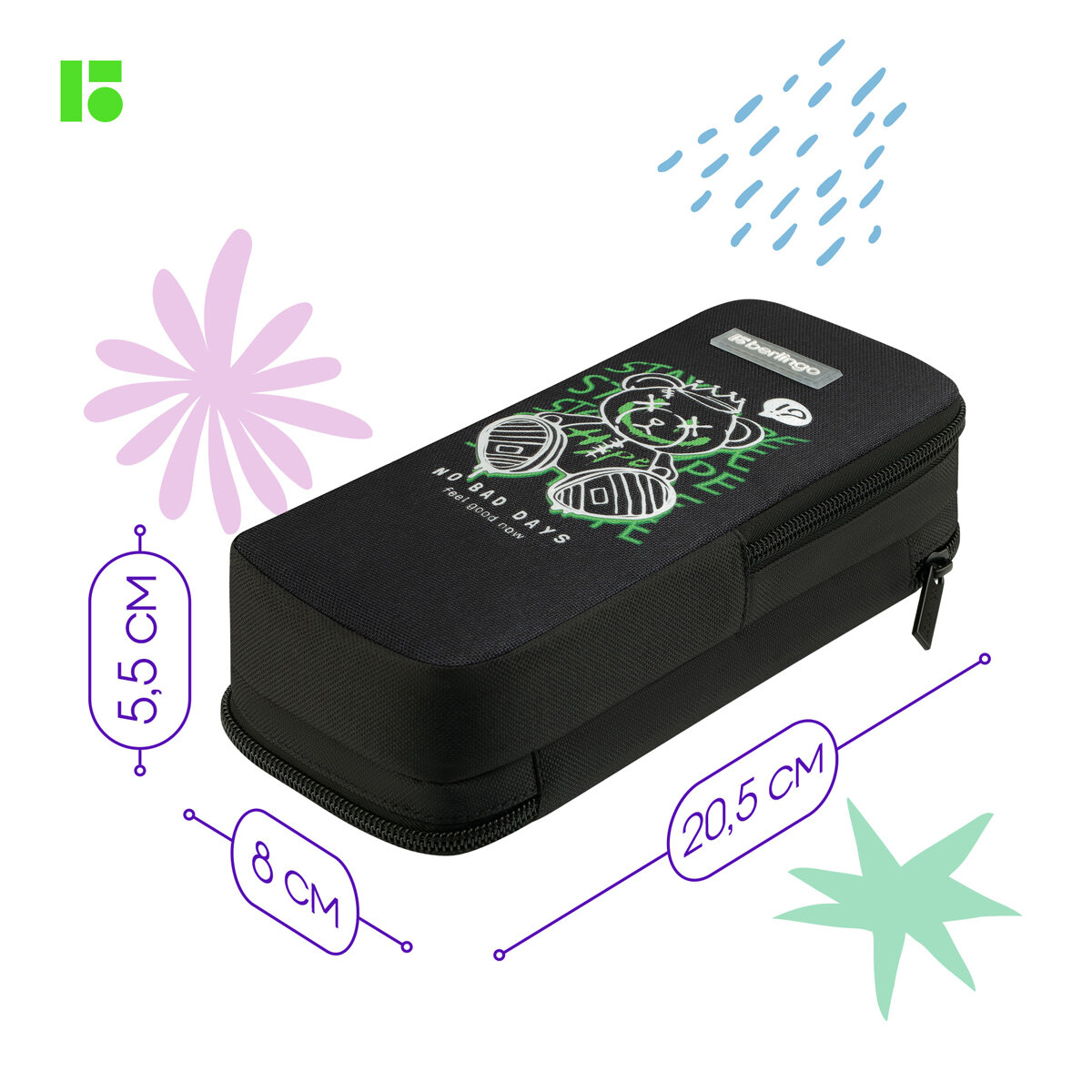 Пенал 2 отделения, 205*80*55 Berlingo "No bad days", полиэстер, внутренний органайзер, магнит информация:
