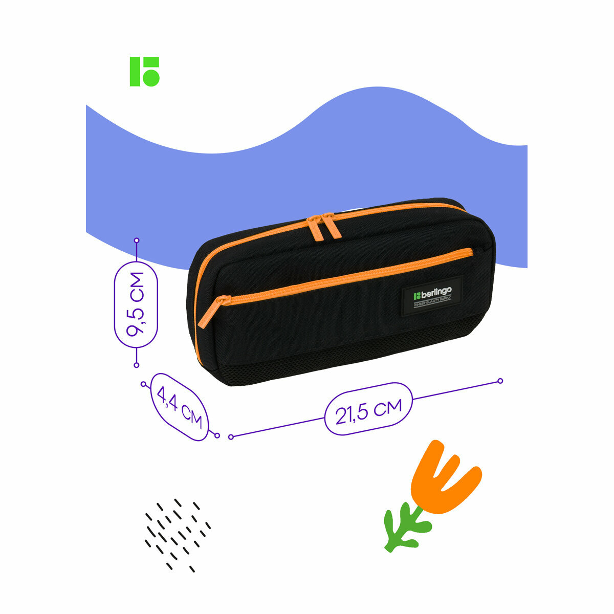 Пенал мягкий 1 отделение, 1 карман, 215*95*44мм, Berlingo "Black and orange", полиэстер, внутр. органайзер
