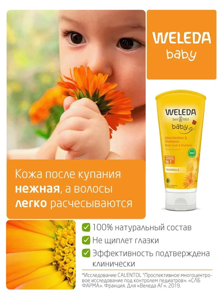 Шампунь-гель WELEDA Детский с календулой для волос и тела 200 мл информация: