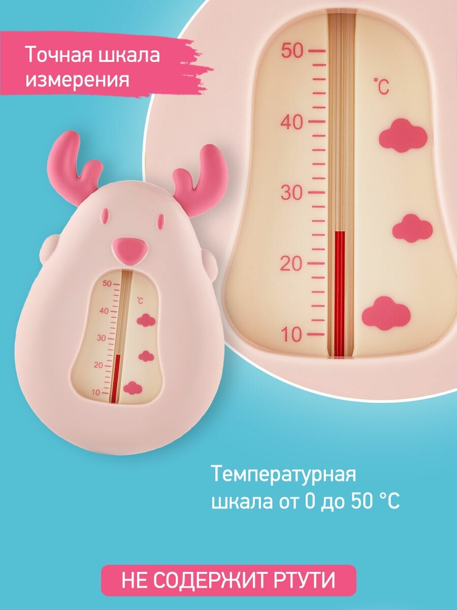 Термометр детский для воды, для купания в ванночке Олень от ROXY-KIDS цвет розовый информация: