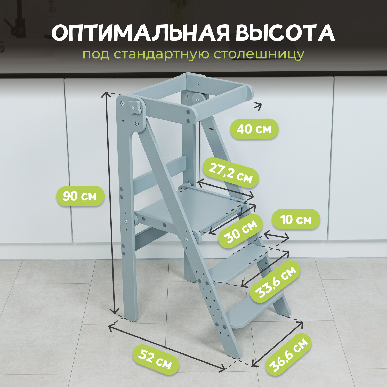Детская башня помощника Монтессори "Комфорт" серая PAPPADO информация: