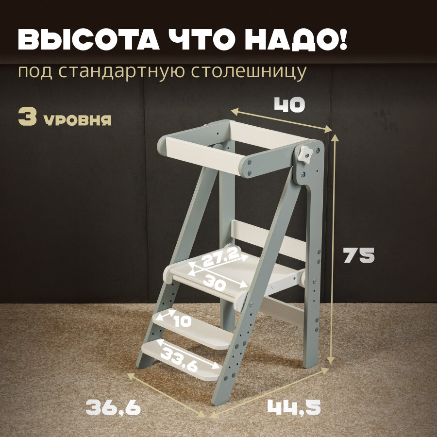 Башня помощника Монтессори "Комфорт Мини серо-белый с доской PAPPADO стульчик для кормления информация: