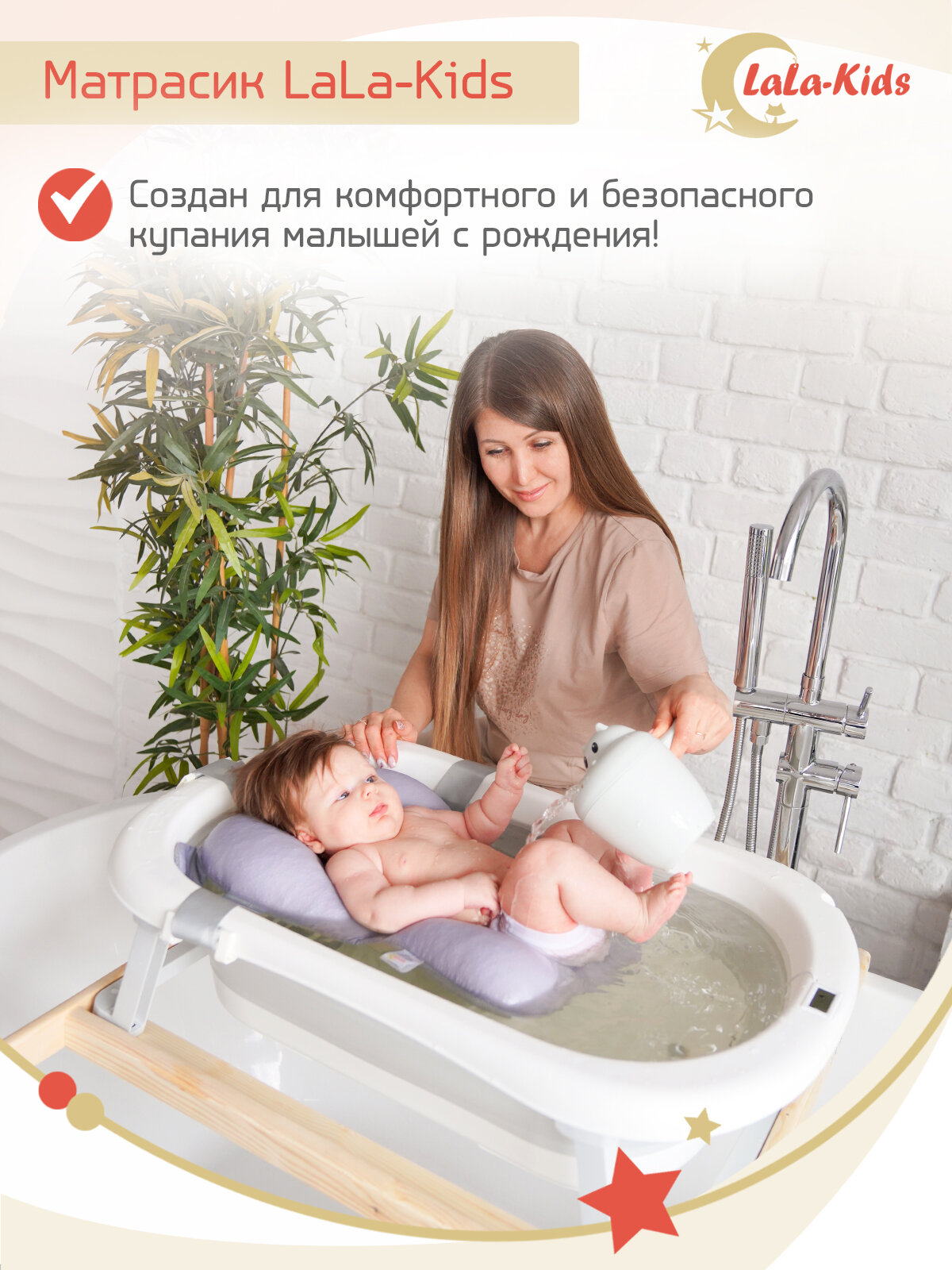 Горка для купания новорожденных LaLa-Kids мягкий матрасик серый 770 ₽