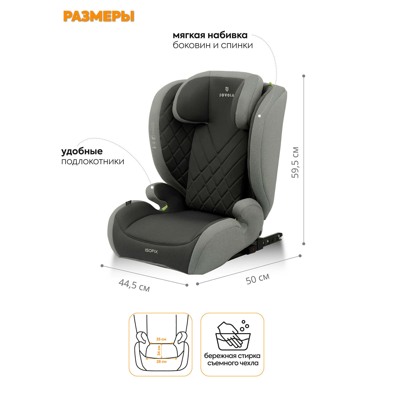 Отзывы на Автокресло бустер детское 15-36 кг Jovola Atour I-Size Isofix, группа 2-3, от 3 до 12 лет, светло-серый