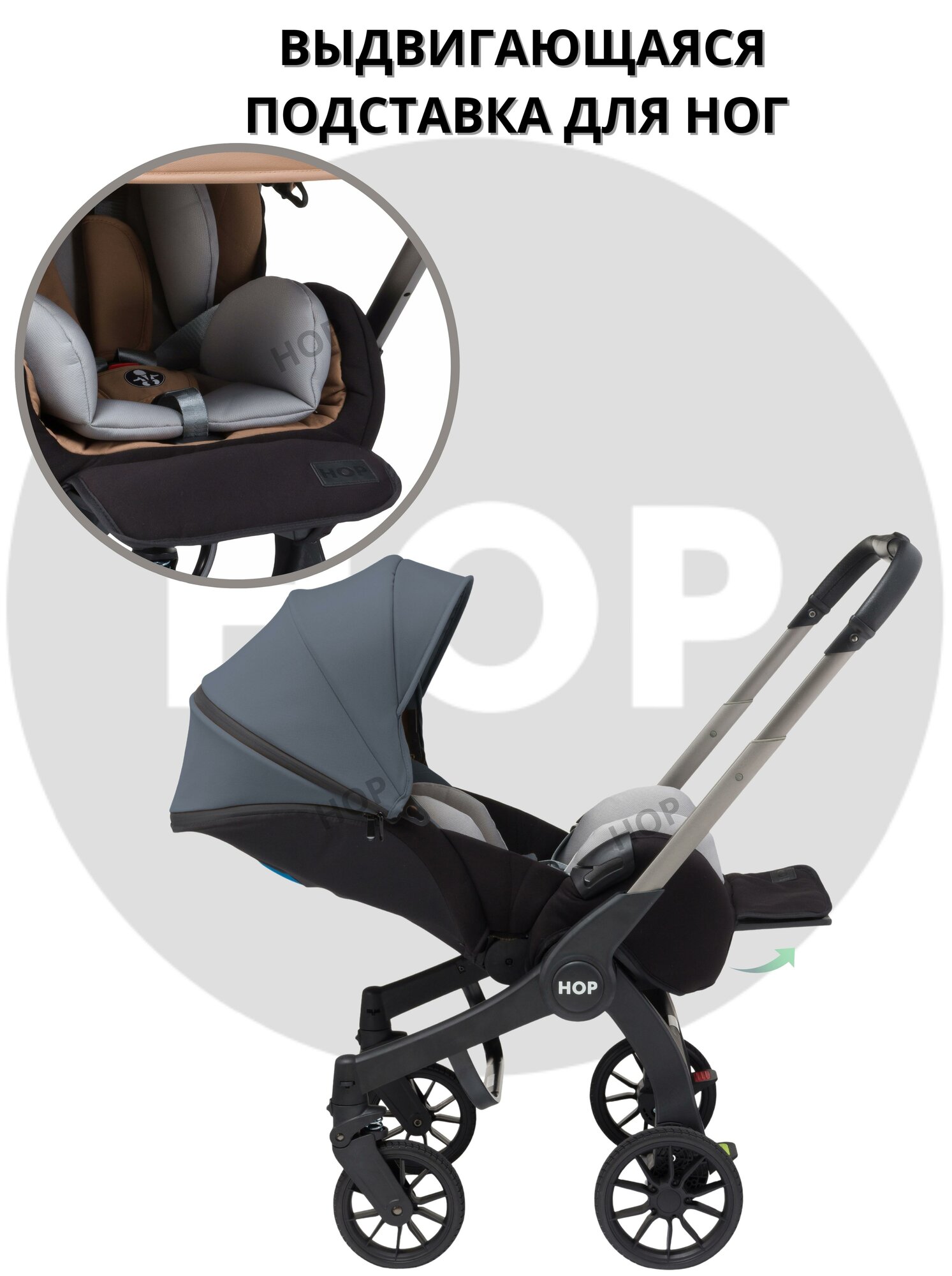 Коляска-автокресло - HOP PEARL - Grey (серый) 4в1 для новорожденных информация:
