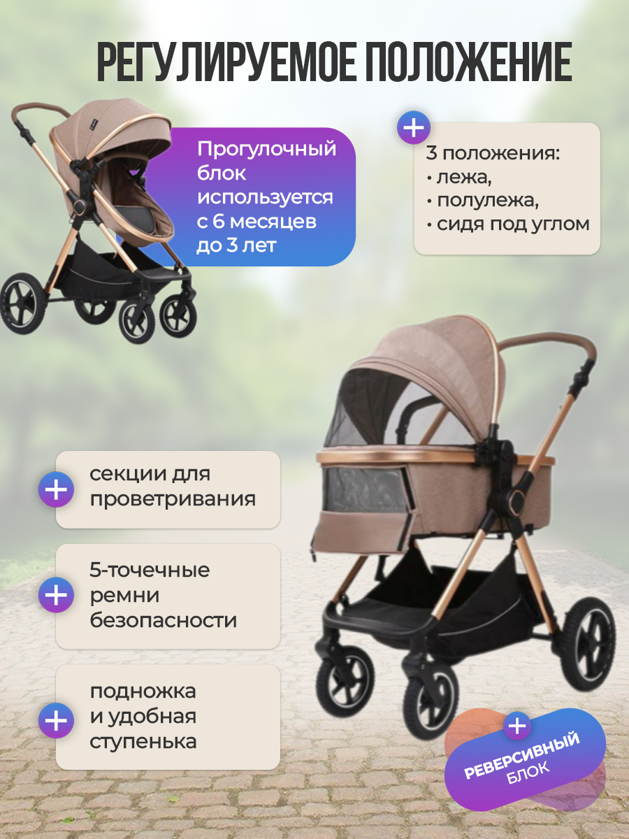 | Особенности шасси | корзина для покупок / перекидная ручка / перестановка блока лицом/спиной / регулировка высоты ручки |