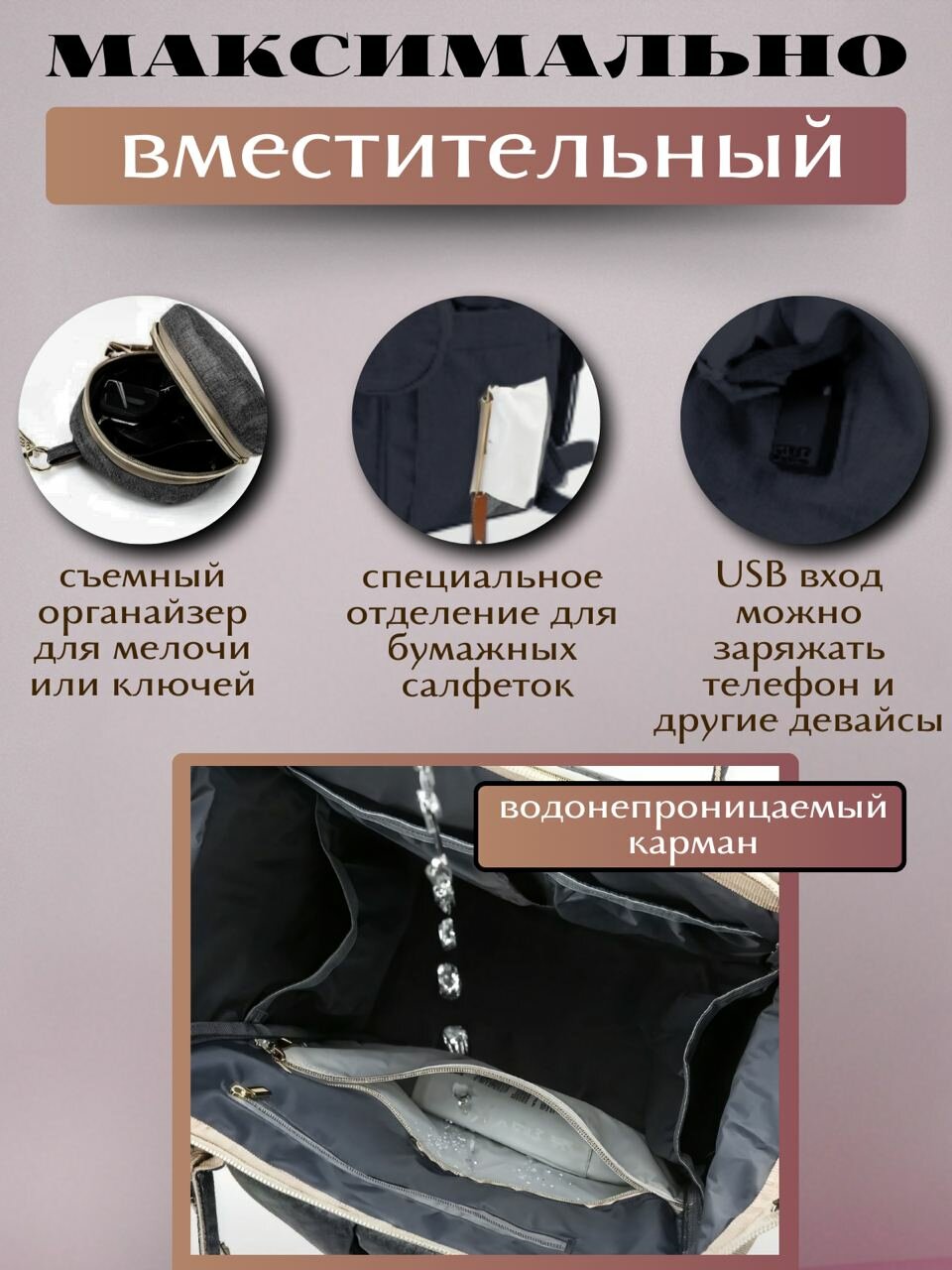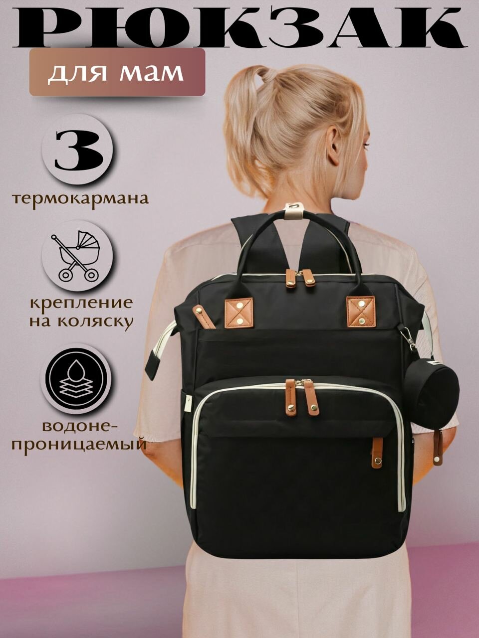 Многофункциональный рюкзак для мамы / Водонепроницаемый дорожный ранец + сумочка для мелочей Morento черный информация: