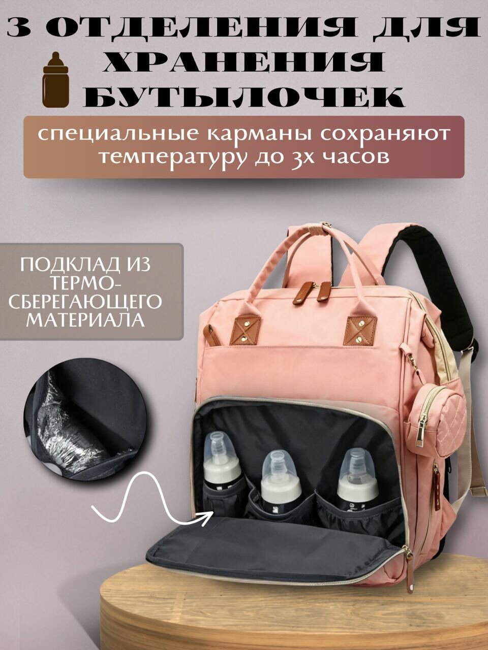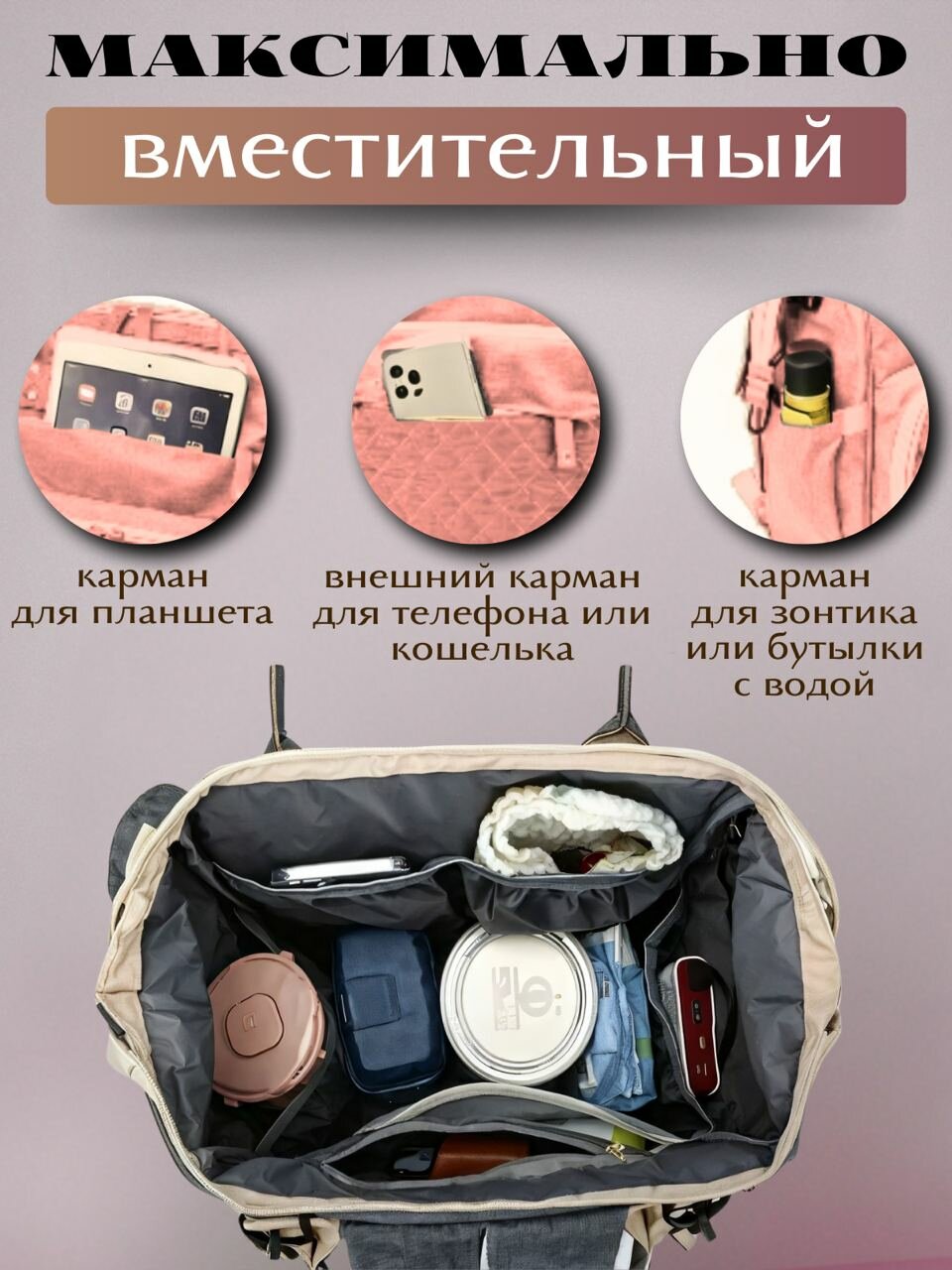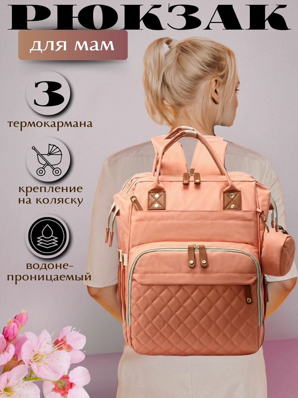Многофункциональный рюкзак для мамы / Водонепроницаемый дорожный ранец + сумочка для мелочей Morento розовый информация: