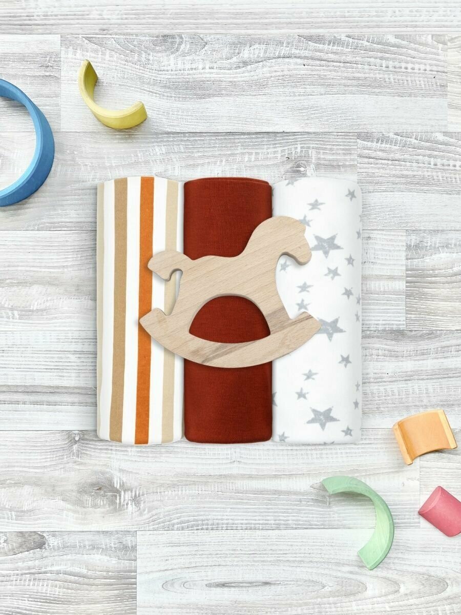 10 цен на Сет из 3х пелёнок Mjolk Полоска/Paprika/Звёзды (80см*80см)