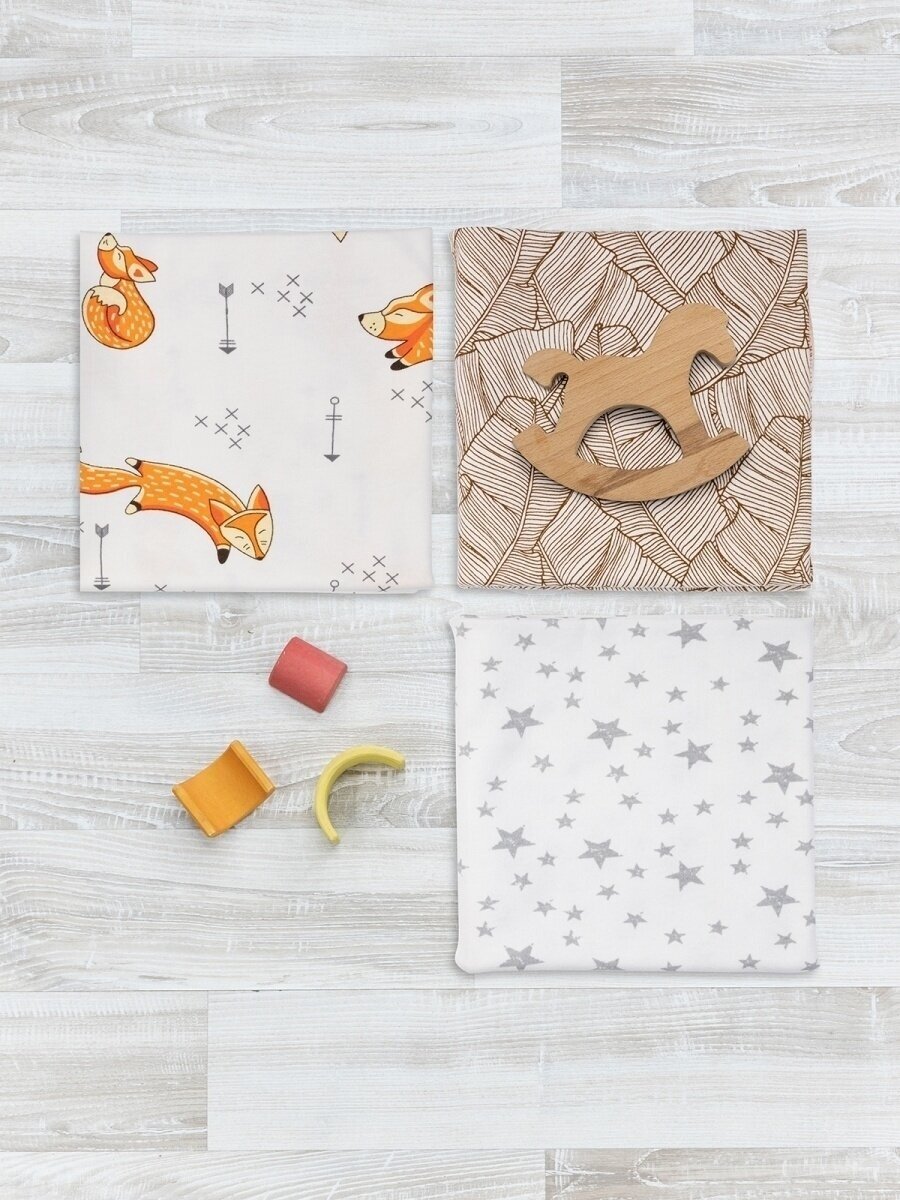 10 цен на Сет из 3х пелёнок Mjolk Лисички/Palm Tree/Звёзды (80см*80см)