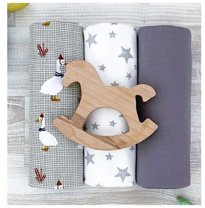 Сет из 3х пелёнок Mjolk Гуси/Fog/Звёзды (120см*85см)