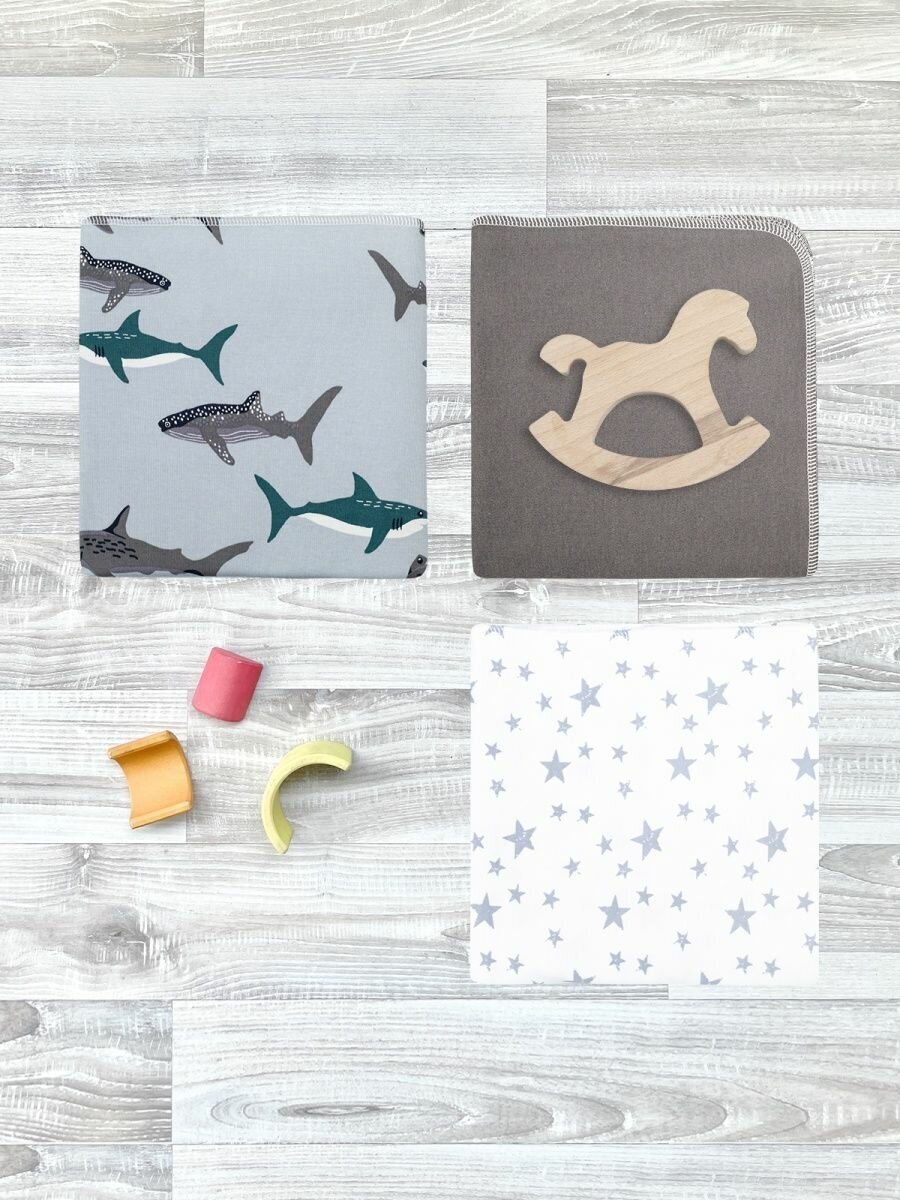 Сет из 3х пелёнок Mjolk Акулы/Звёзды/Fog (80см*80см) информация: