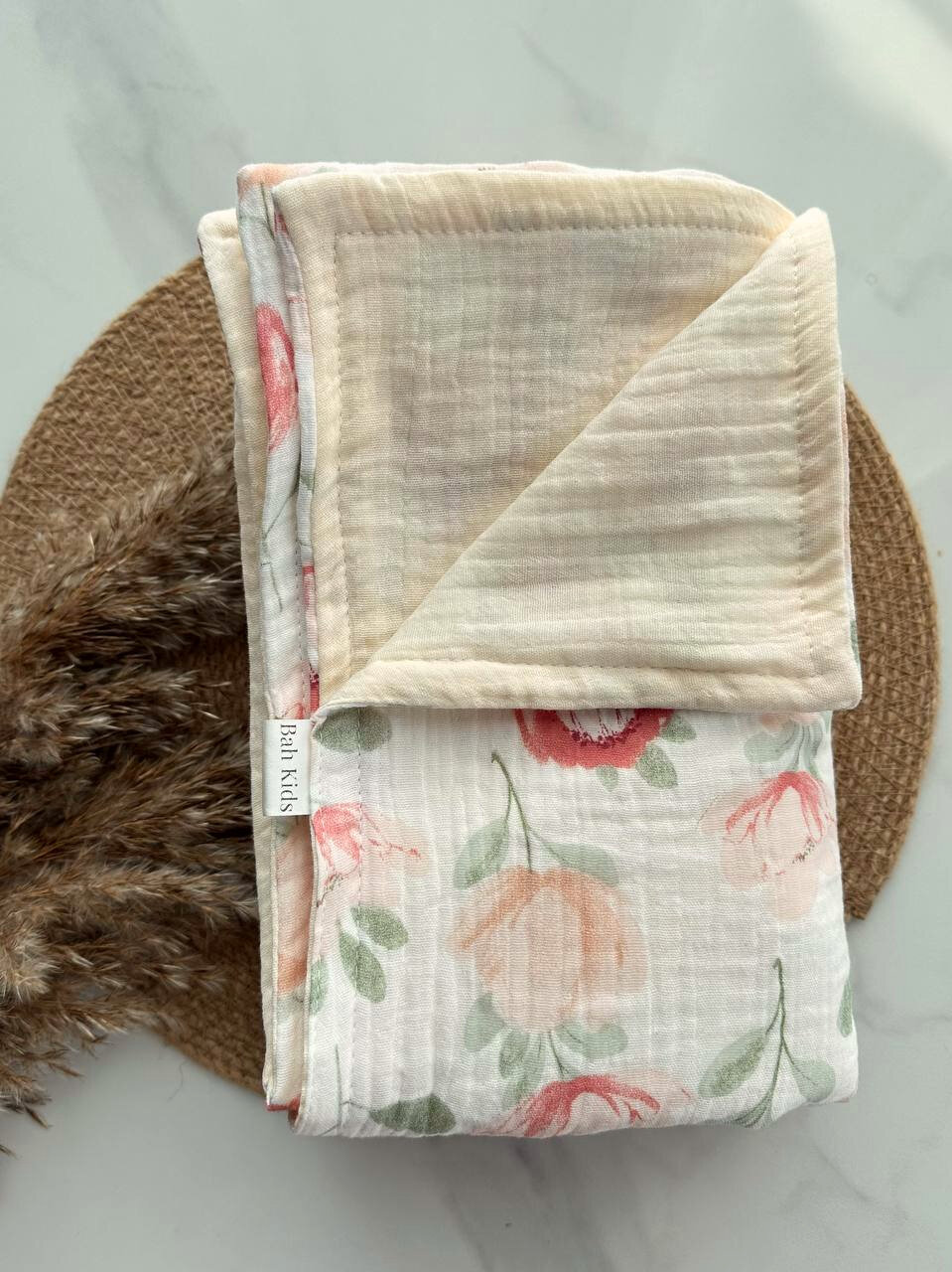 Муслиновый плед для малыша 100*130 см / Плед из муслина для новорожденных / детское одеяло полотенце 4х слойный / пионы информация: