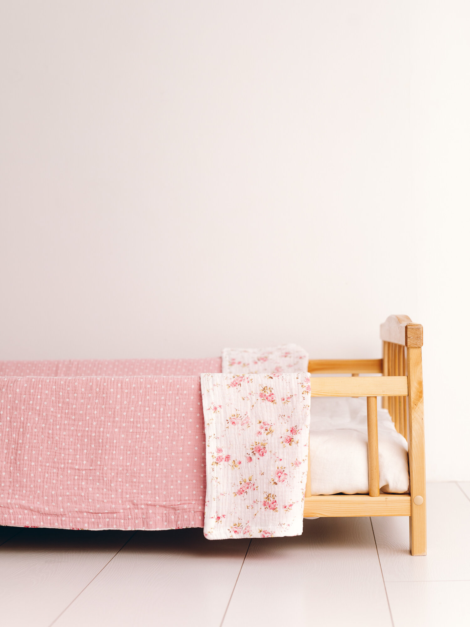 Муслиновый плед для малыша 100*130 см / Плед из муслина для новорожденных / детское одеяло полотенце 4х слойный / цветы с горохом информация: