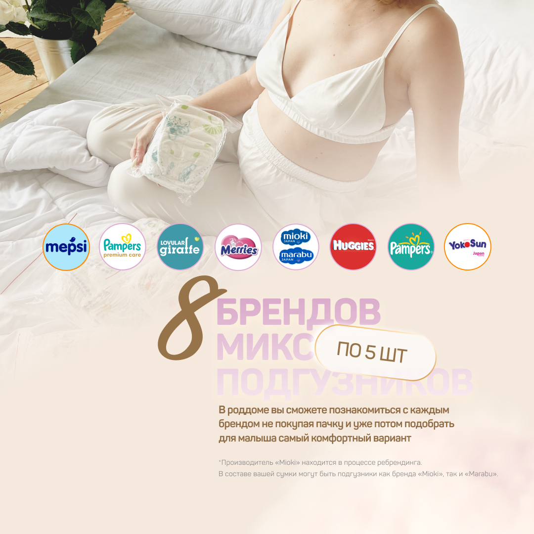 Сумка в роддом готовая для мамы и малыша с наполнением, 43 предмета + 3 сумки, комплектация "Супер Мама", прозрачная информация: