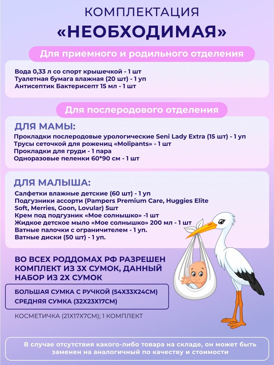 Cумка в роддом прозрачная готовая для мамы и малыша набор для беременных комплектация Необходимая информация: