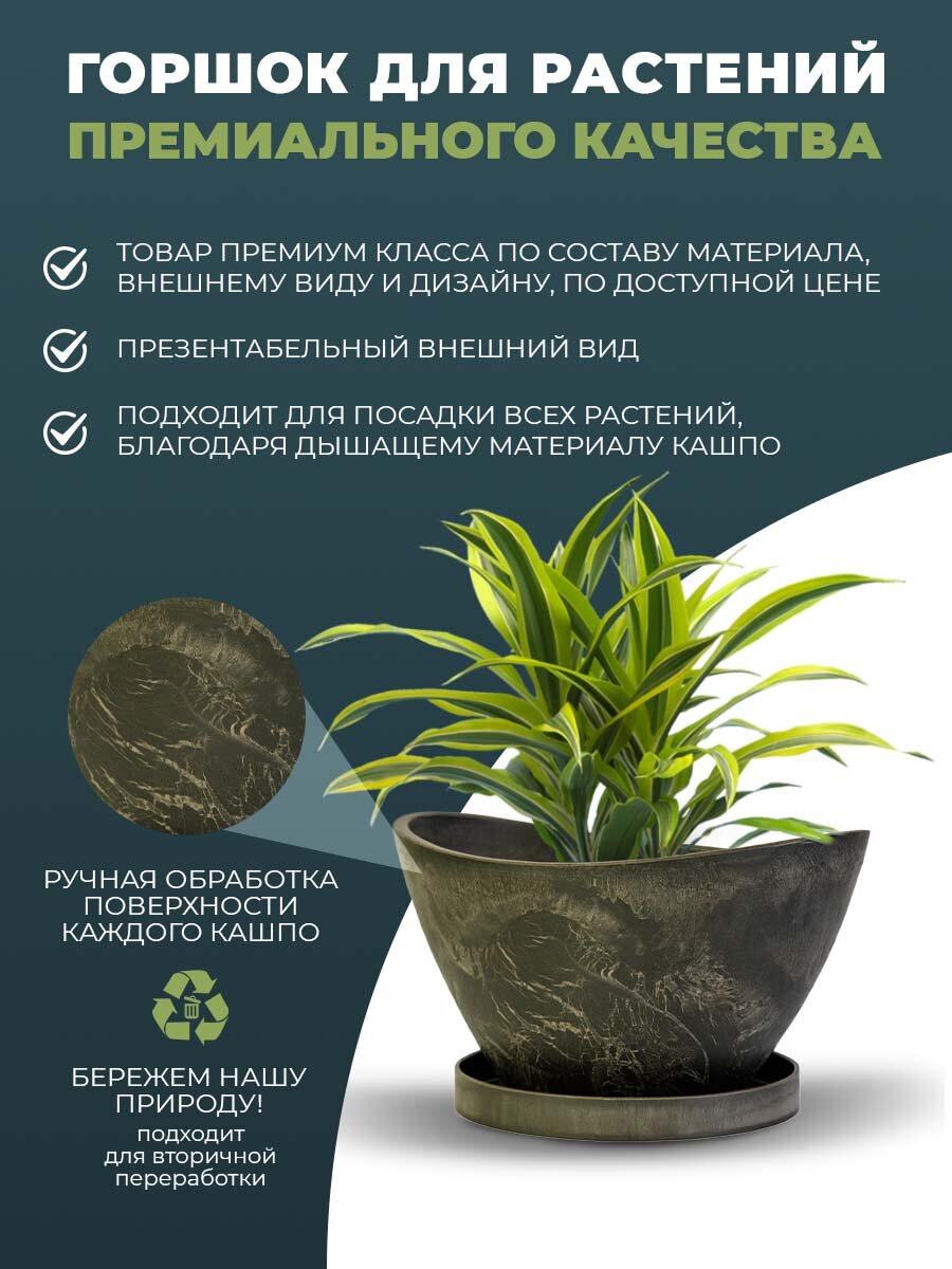 Горшок для цветов и растений с поддоном GreenShip H-09YB13 Лодочка 13x9x8,5 см, 0.4л, темно серый информация:
