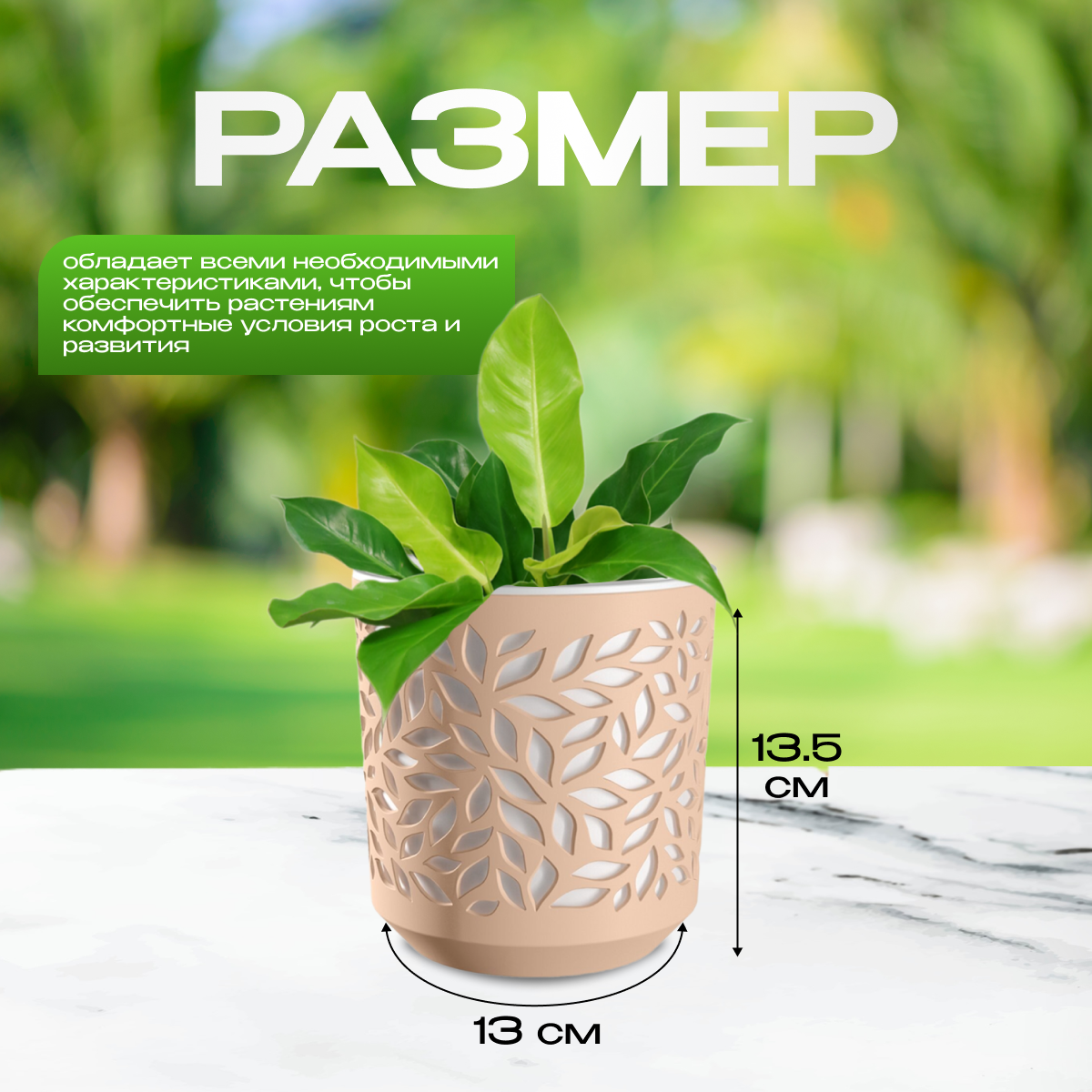 Кашпо пластик, 1.25 л, 13х13.5 см, пудра/белый, ВМС, Leaves, КШ-9823