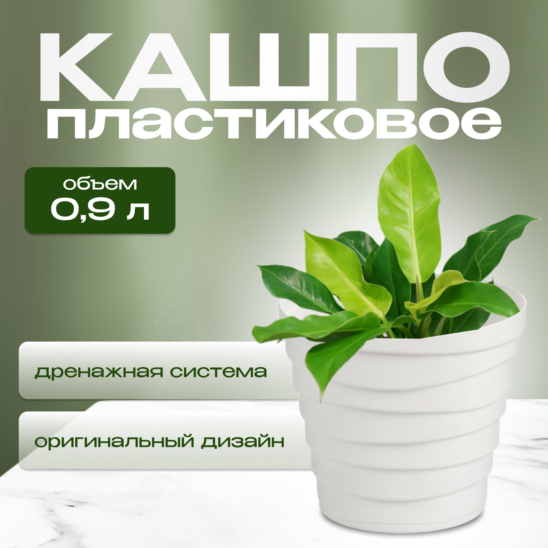 Кашпо для цветов пластиковое 0,9л d-13,2см «Бархан» Белый