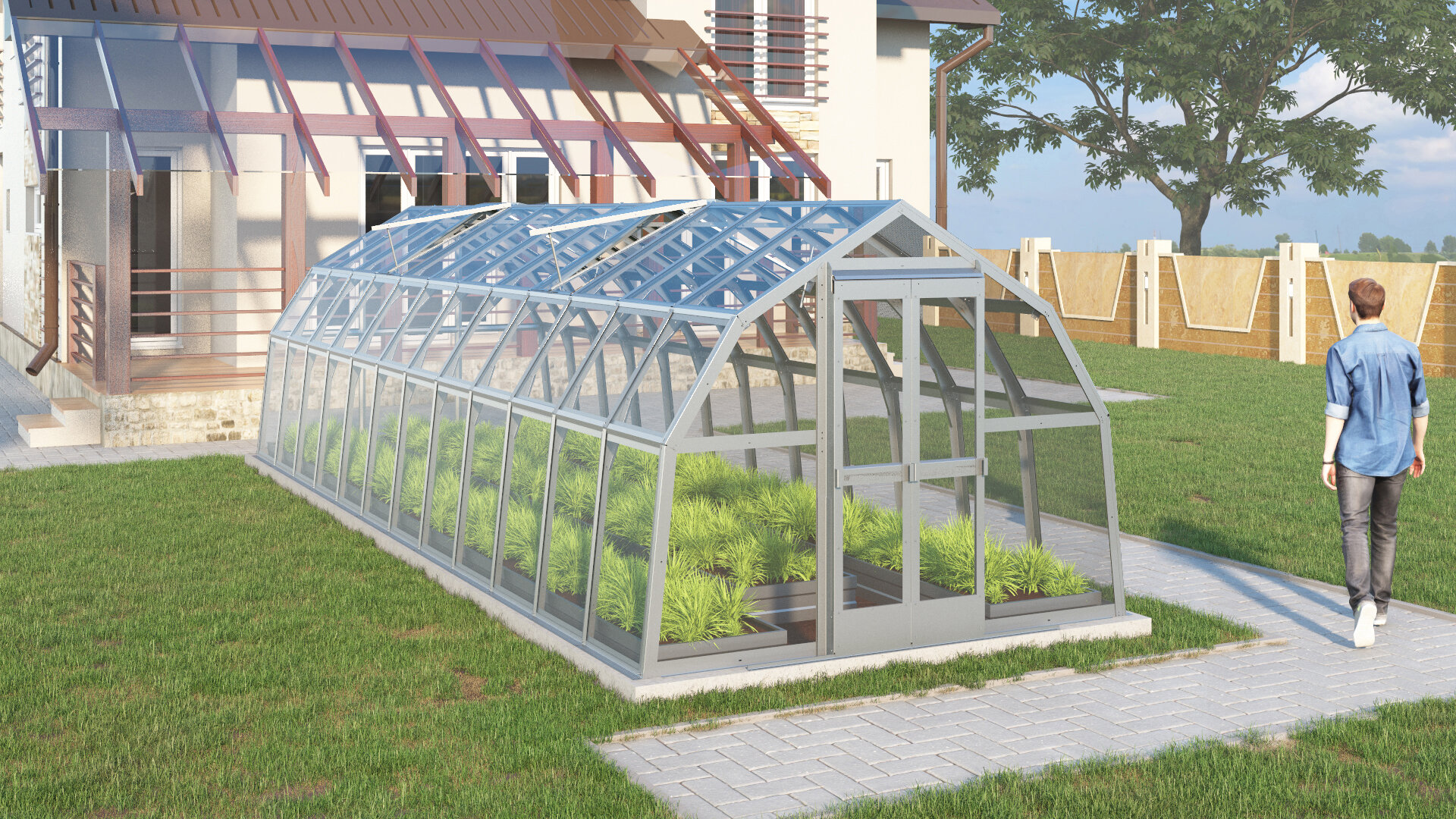 Парник Тюльпан-мини с открывающейся крышей 4 метра на грядке