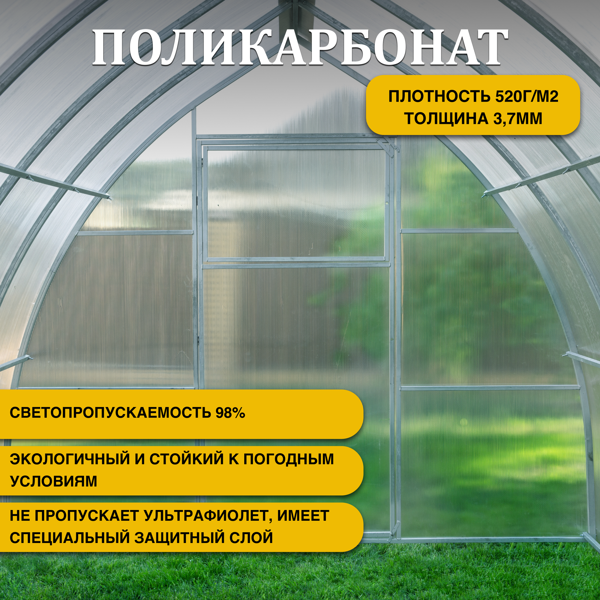 Теплица ТМК Стелла. Каркас из профильной трубы 30х20 мм, прозрачный поликарбонат 3,7 мм, 6х2,7х2,3 м информация: