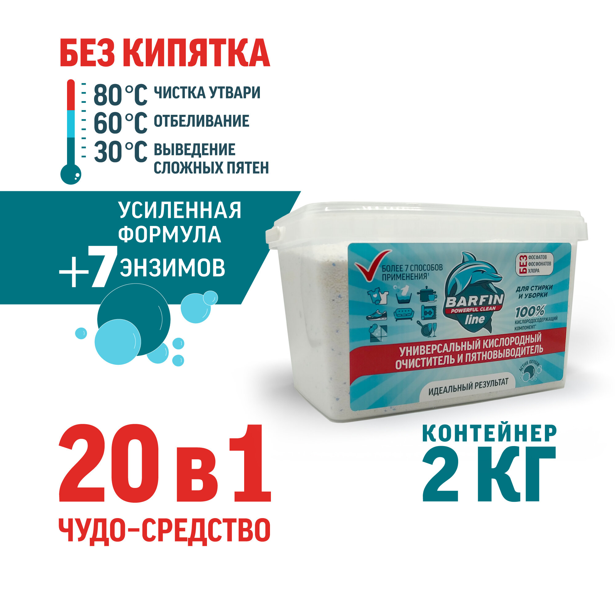 Кислородный пятновыводитель для белых и цветных тканей BARFIN контейнер - 2кг информация: