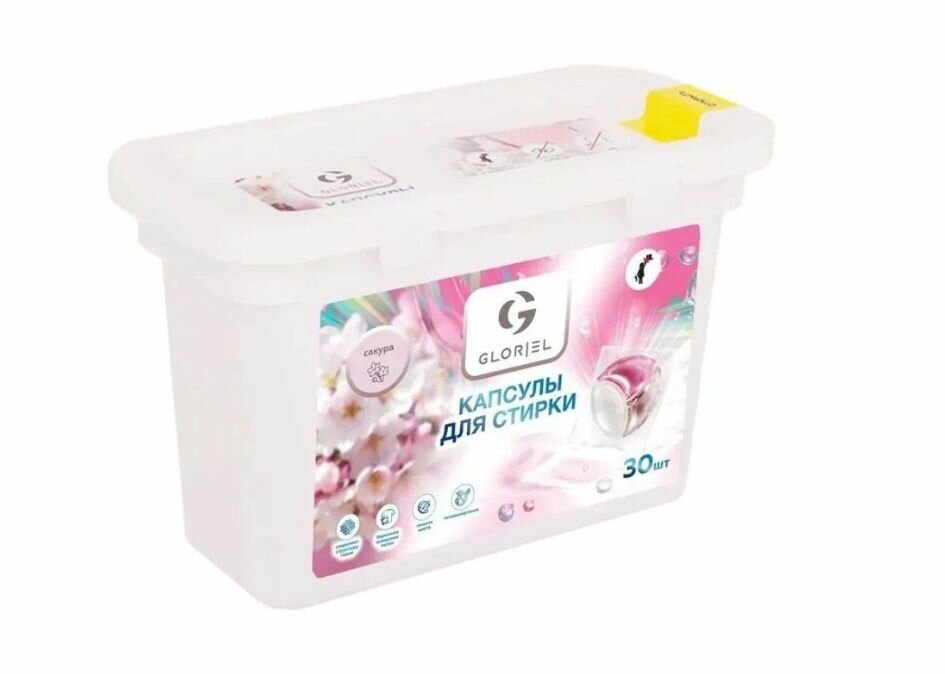 GLORIEL Мини-капсулы для стирки белья 3 в 1 Сакура, 10 г, 30 шт информация: