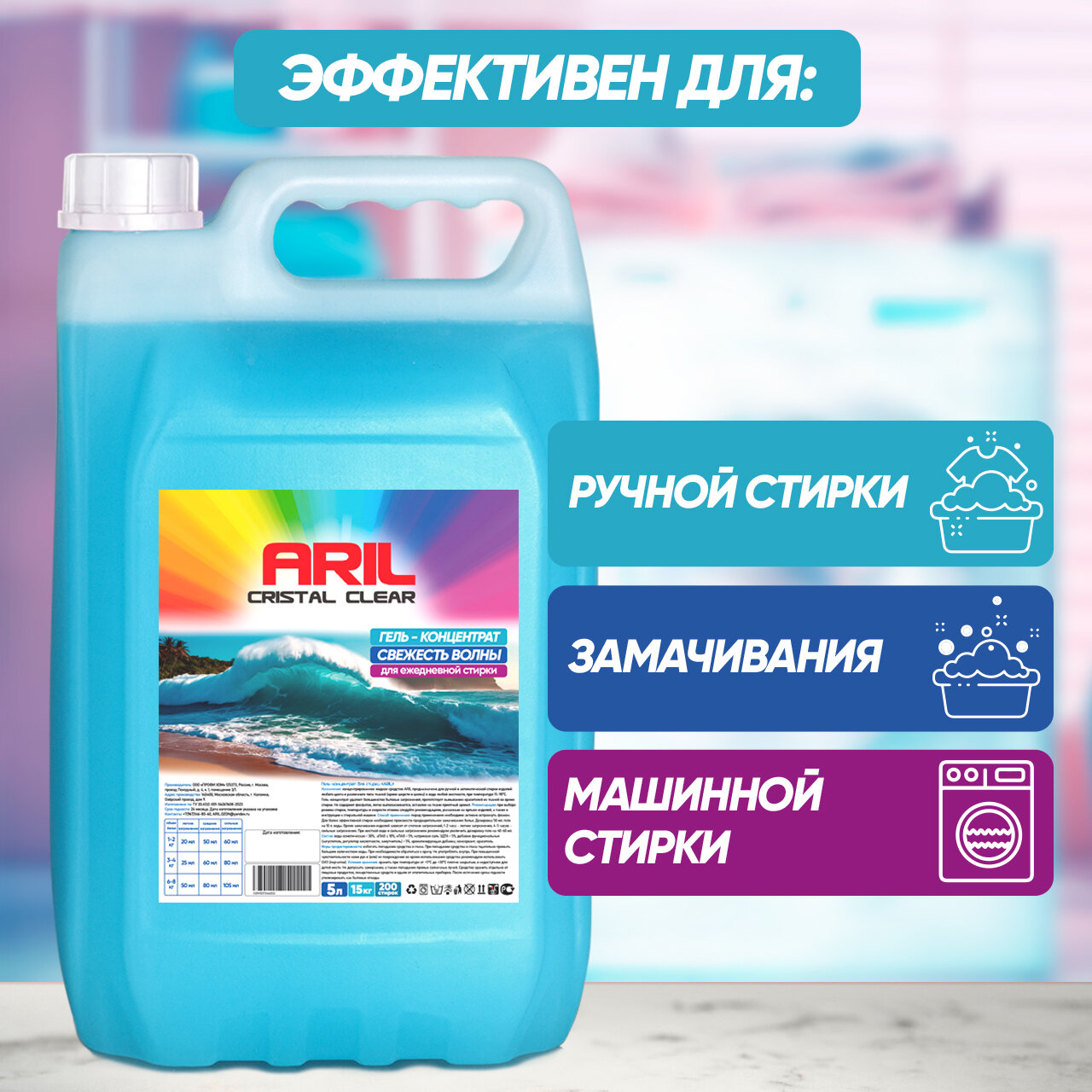 Гель для стирки ARIL 5 литров Жидкий порошок универсальный Свежесть волны / Средство для стирки информация: