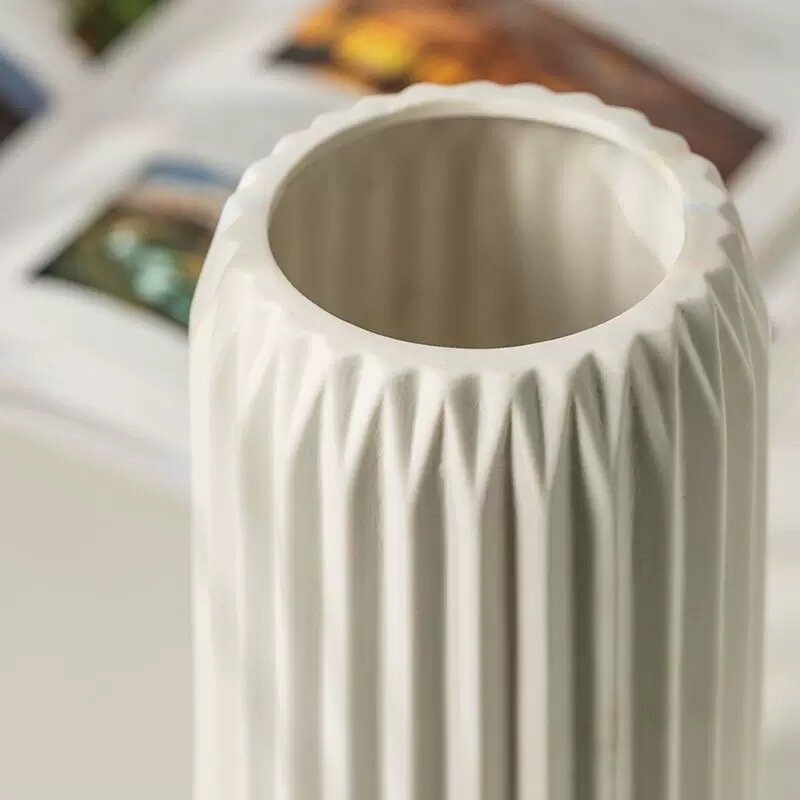 Отзывы на Белая керамическая ваза для цветов и сухоцветов высотой 20см / рельефная ваза матовая