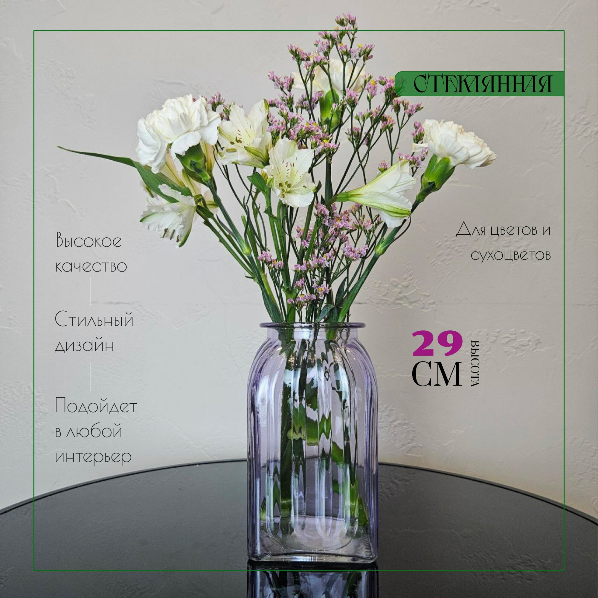 Отзывы на Красивая стеклянная ваза для цветов "Ханна" фиолетовая, декор и интерьер в дом.