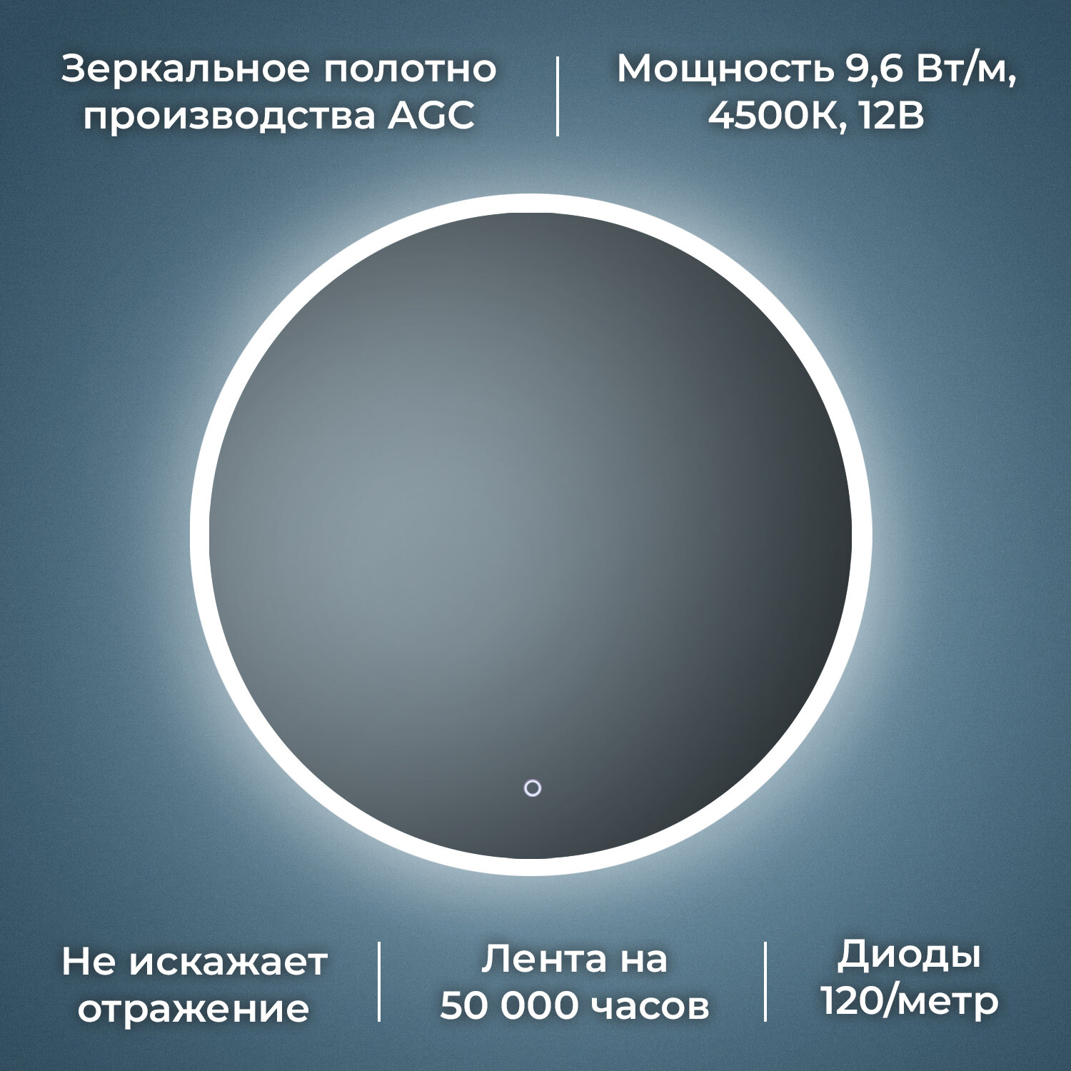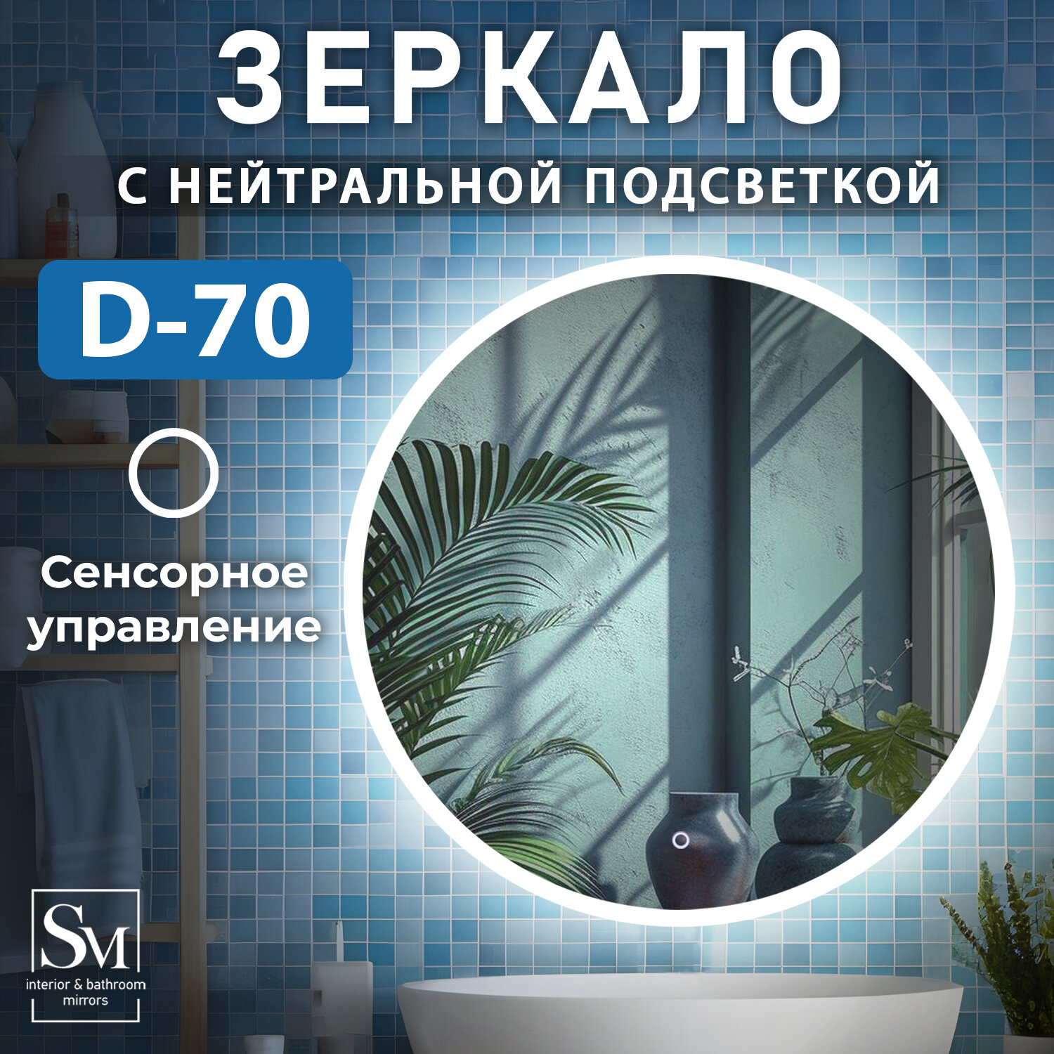 Зеркало в ванную с подсветкой Silver Mirrors "Pele lite" 70 см зеркало настенное, фоновая подсветка, нейтральный свет 4500К, сенсорное управление с регулировкой яркости, влагозащищенное, интерьерное зеркало 4 760 ₽