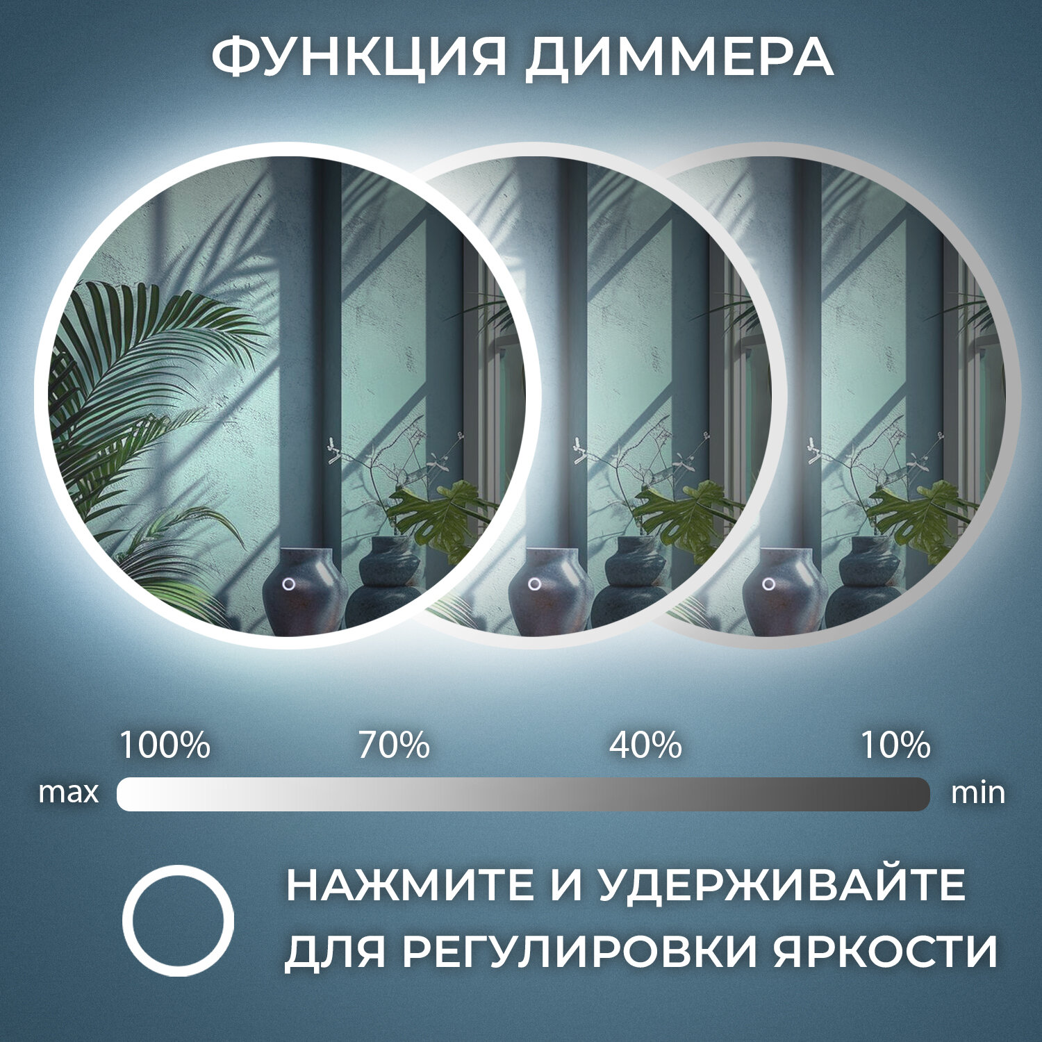 Зеркало настенное в ванную круглое Pele lite, 70 см (сенсорный выключатель, три вида LED подсветки) зеркало с подсветкой в ванную 6 270 ₽