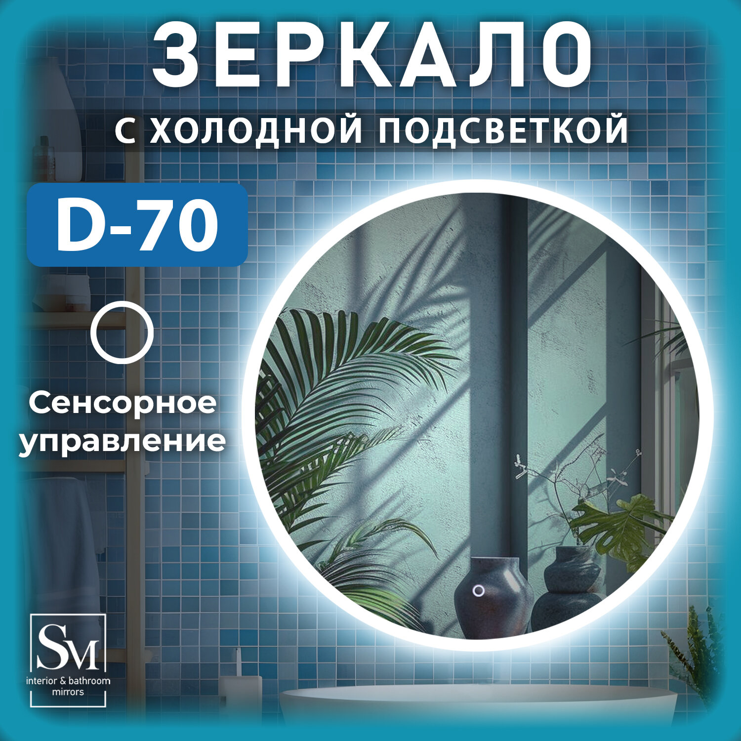 Зеркало в ванную с подсветкой Silver Mirrors "Pele lite" 70 см зеркало настенное, фоновая подсветка, нейтральный свет 4500К, сенсорное управление с регулировкой яркости, влагозащищенное, интерьерное зеркало 4 760 ₽