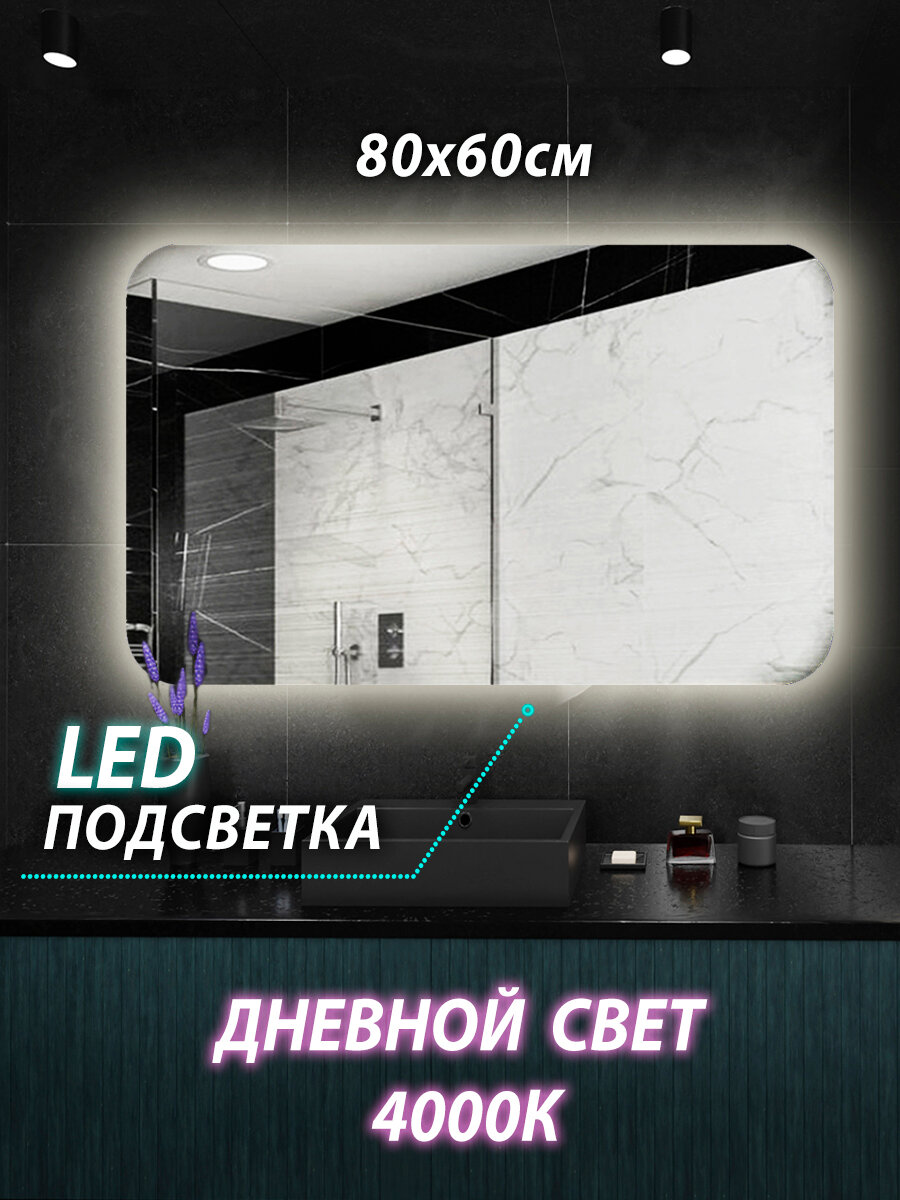 Зеркало для ванной с подсветкой 80x60 cенсор 4000 К информация: