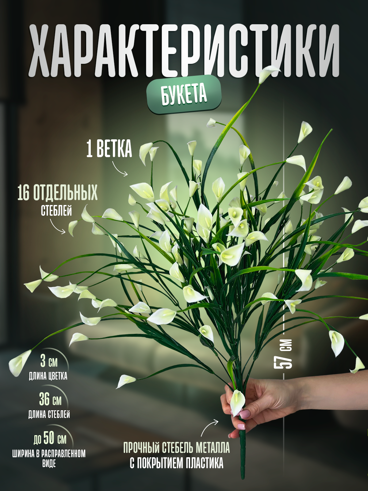 | Подробная комплектация | ветка из 16 стеблей по 36 см |