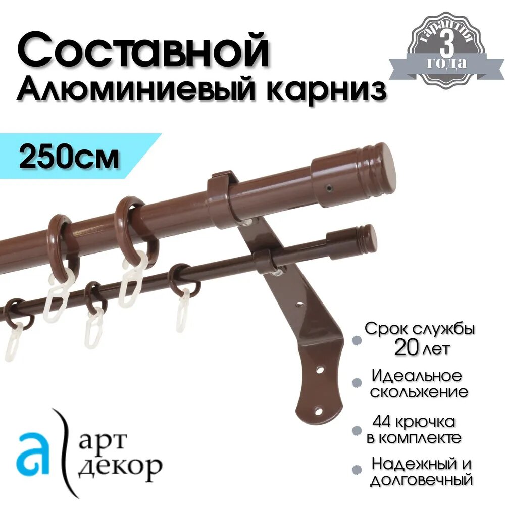 Карниз для штор двухрядный настенный металлический NEO, составной, 250 см коричневый / Гардина для окна алюминиевая информация: