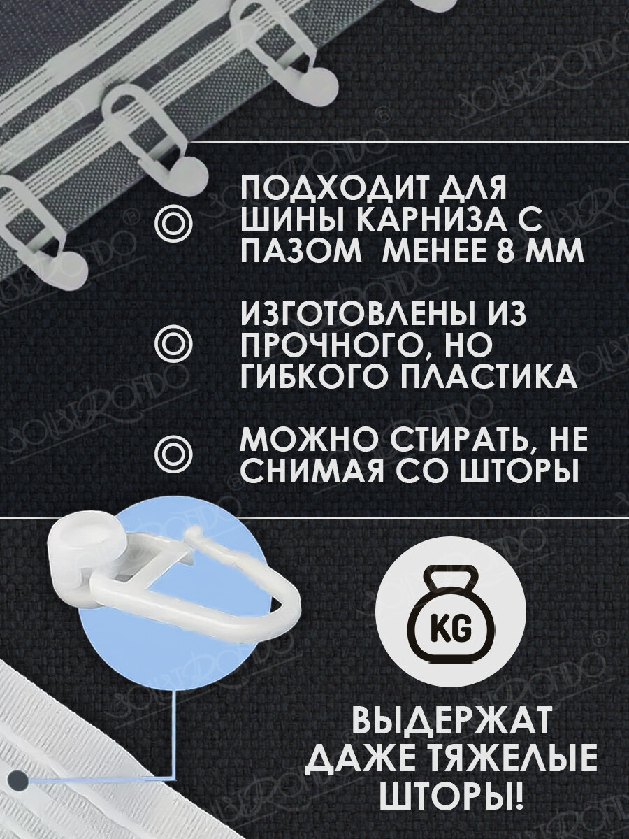 | Комплектация | Крючки с роликом для штор-100 шт. |