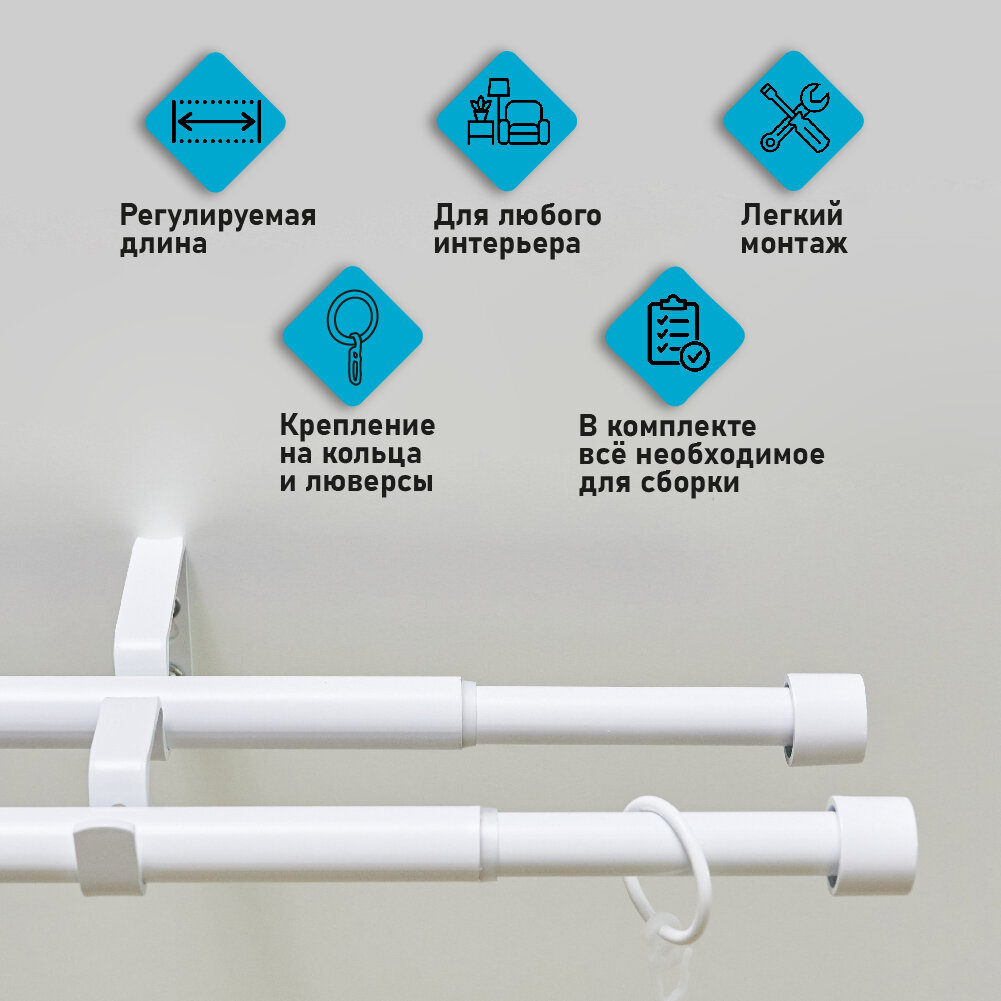 Карниз для штор Трансформер 19/16 мм двухрядный заглушка 160/320см Белый Скин информация: