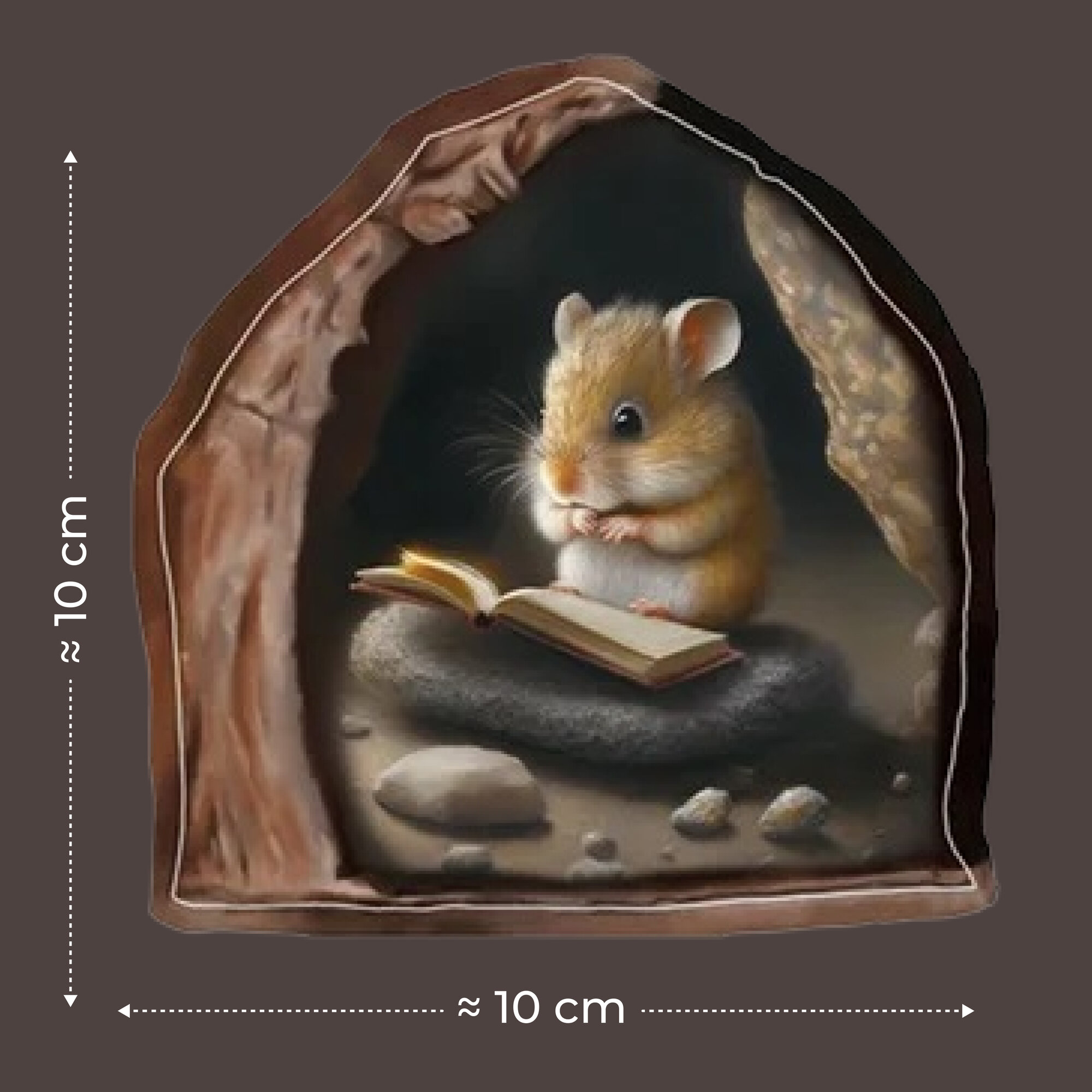 Забавная наклейка для декора интерьера Мышка с книжкой/ Прикольная наклейка на стену / на шкаф / на мебель / на дверь информация: